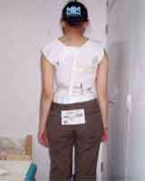 この装具装着姿を見ていただければわかるように左腰椎湾曲、右胸椎湾曲でも同じ装具である、