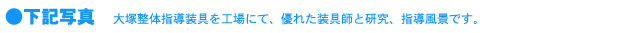 大塚談→医師は装具社に指導したくてもできない。装具社は医師の指導なく勝手に改良できないこれが装具療法の悪循環です。装具社は自社の装具しか知らない。医師も勤務する病院の装具しか知らない。この問題点を追求しているのが大塚整体です。