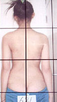 重力垂直線と体感意識のズレを認識、体操で改善。体操方法を動画で確認。 4名の男女に側湾症改善大塚式鍛錬体操を指導、その後一定期間を経てレントゲン検診。 (a)男子 中学2年生 14歳 16度 >>改善例をみる 症例8 (b)男子 医大生 18歳 25度 >>改善例をみる 症例12 (c)女子 小学5年生 10歳 8〜7度 >>改善例をみる 症例13 (d)女子 小学6年生 12歳 15度 >>改善例をみる 症例14