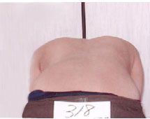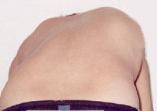 それに対して構築性側湾症とは背骨の曲がりとともに肋骨に影響がでてきます。 そのため、一般的には右背中肋骨隆起(出っぱり)が発生とともに、左前肋骨の隆起も発生、肋骨全体が回施する現象です。 逆S字カーブでは左腰椎部も隆起します。 この現象の原因は不明であるため、側湾症には治療法がなく、注射、シップ、飲み薬もありません。そのため放置療法いわゆる経過観察となります。
